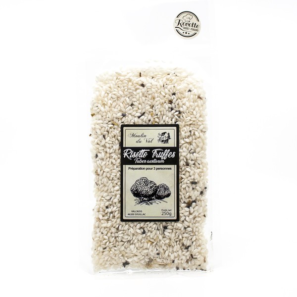 | Ingrédients | Riz arborio 92%, truffes d'été 4%, échalotes 2%, Sel et Arôme. |