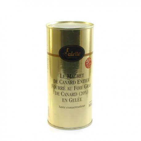 Une entrée prestigieuse avec ce magret fourré au foie gras de canard. Fin et délicat, il ravivera vos papilles. Vous pourrez le consommer en fine tranche à l'apéro ou en tranches plus épaisses en entrée.
